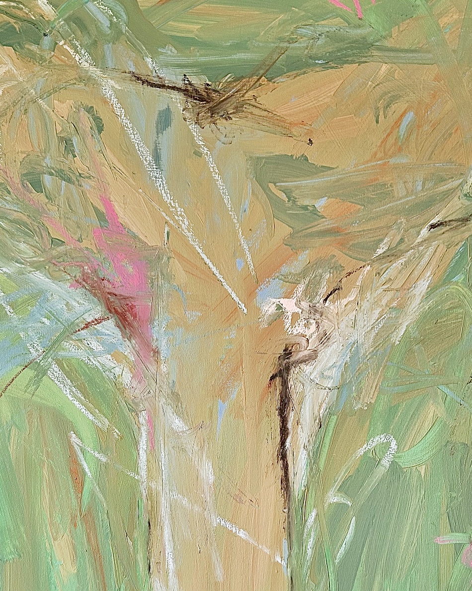Acrylic, Oil Pastel on Canvas, Light Wood Box Frame